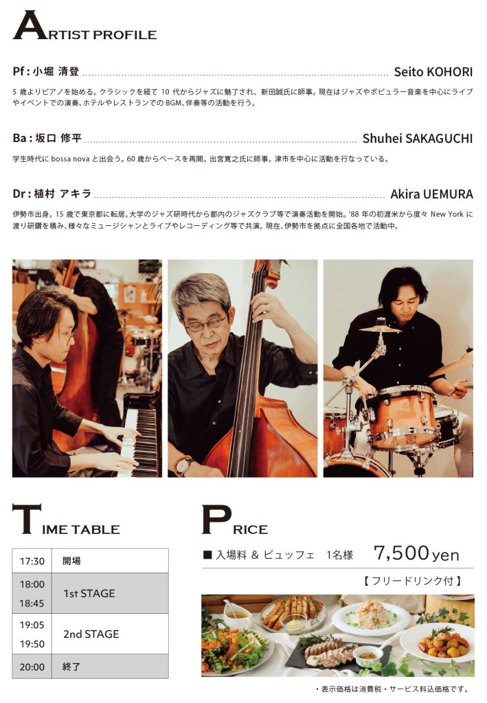秋の夜、(新たなステージで始まる)JAZZ LIVEとお食事を楽しむ特別な時間。<ご予約受付中>