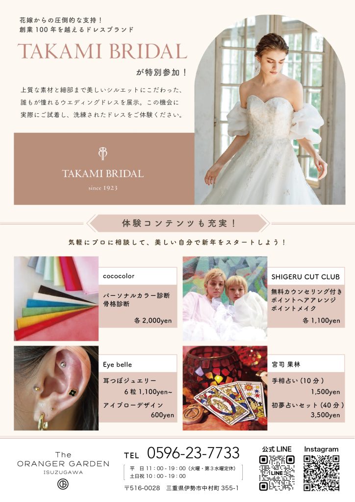 今回は衣装ブランド・TAKAMI BRIDALさんをお招きして、沢山のドレスを展示いたします!